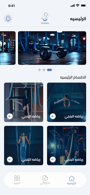كلاود ناين هو تطبيق متكامل يسهّل إدارة رحلتك الرياضية في مركزك المفضل. يتيح لك استعراض جميع الكلاسات المتاحة واختيار الأنسب لك بسرعة وسهولة، مع إمكانية حجز الكلاسات مباشرة من التطبيق. كما يمكنك متابعة اشتراكاتك، الاطلاع على جدول الكلاسات، والدفع الإلكتروني الآمن بكل راحة. كل ميزة في التطبيق مصممة لتوفير تجربة سلسة وممتعة، تساعدك على الوصول لأهدافك الرياضية بطريقة منظمة وفعّالة.